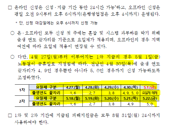 신청 첫 주에는 접속 혼잡을 줄이기 위해 출생년도 끝자리 기준 요일제가 운영됩니다.